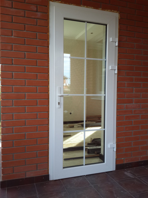Пластиковая дверь может быть глухой: либо с глухим низом и стеклянным верхом, либо с обоими стеклянными секторами. Секторы могут быть расположены в разных положениях.