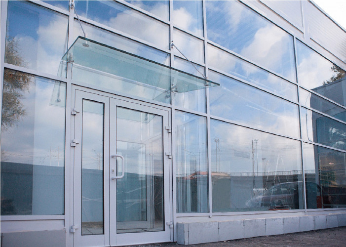 Нередко в фасады из алюминия встраиваются цельностеклянные или алюминиевые двери с автоматическим приводом. Мы используем автоматические приводы таких известных европейских производителей как «Geze», «Dorma», «Besam» , «CAME».